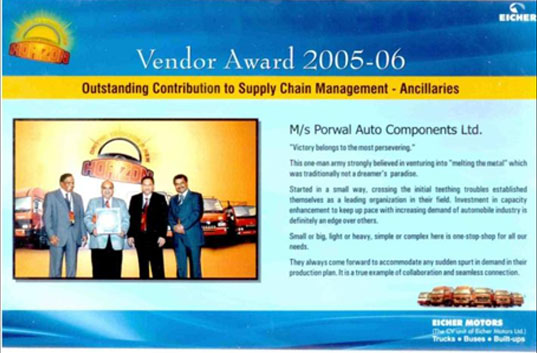 1999 Award for New Product Development by Eicher Motors Ltd.